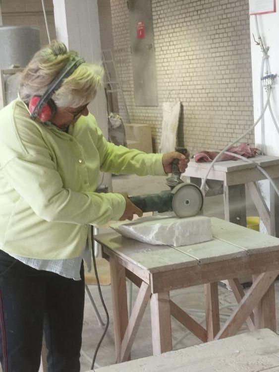 Eerst met speksteen begonnen om te oefenen om me vervolgens aan het stuk marmer te wagen.